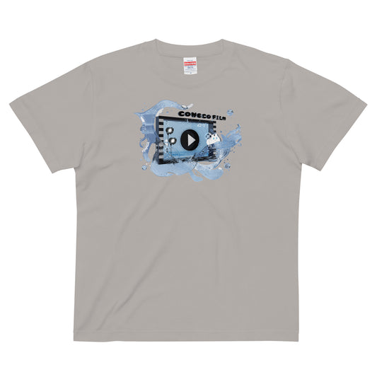 CONECO FILM刺繍ロゴTシャツ (黒、赤、白生地×黄色ロゴ)