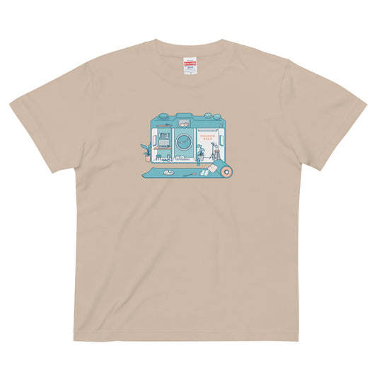 シャープなロゴTシャツ (ライトベージュ生地×オレンジ色ロゴ)